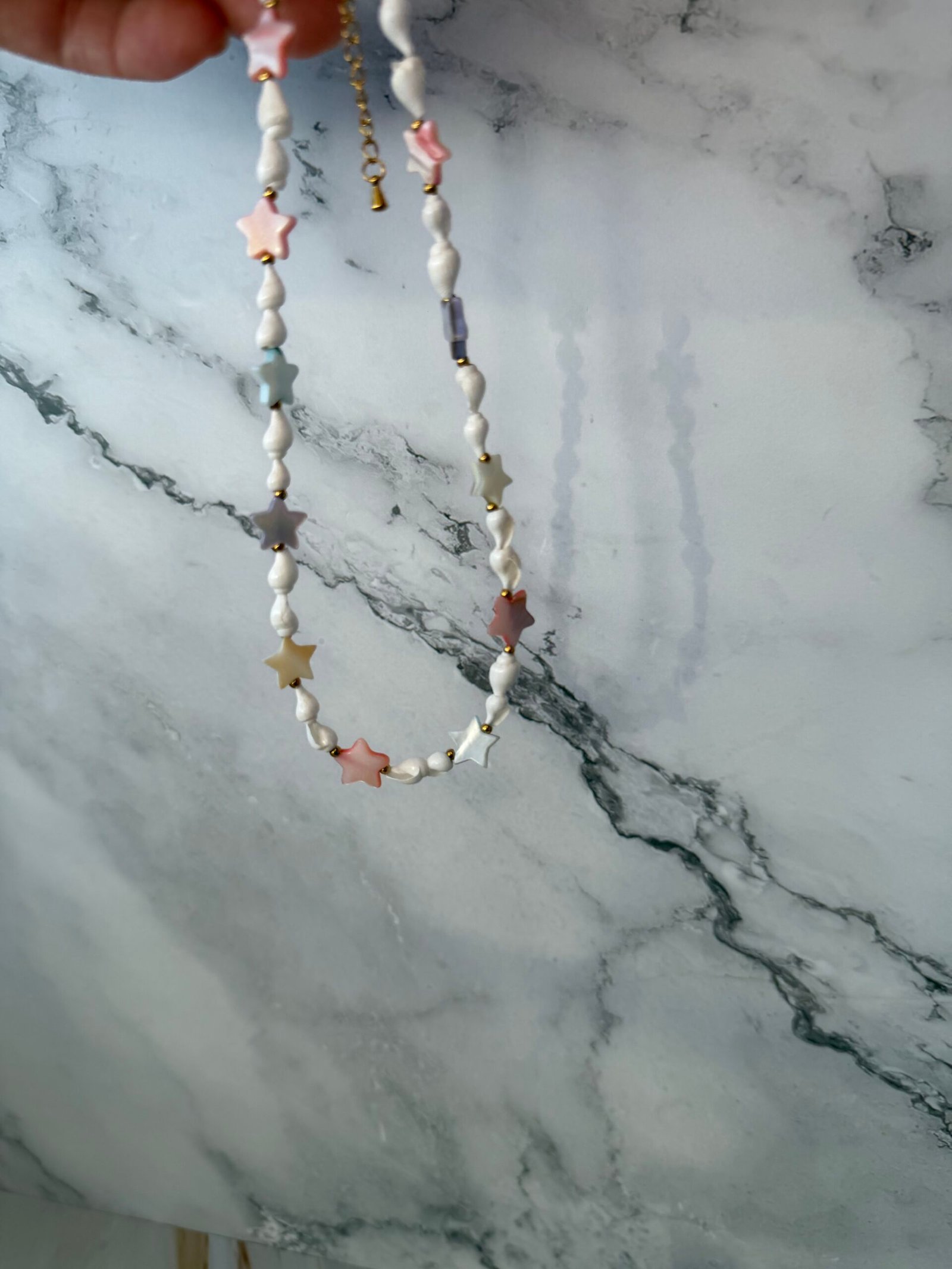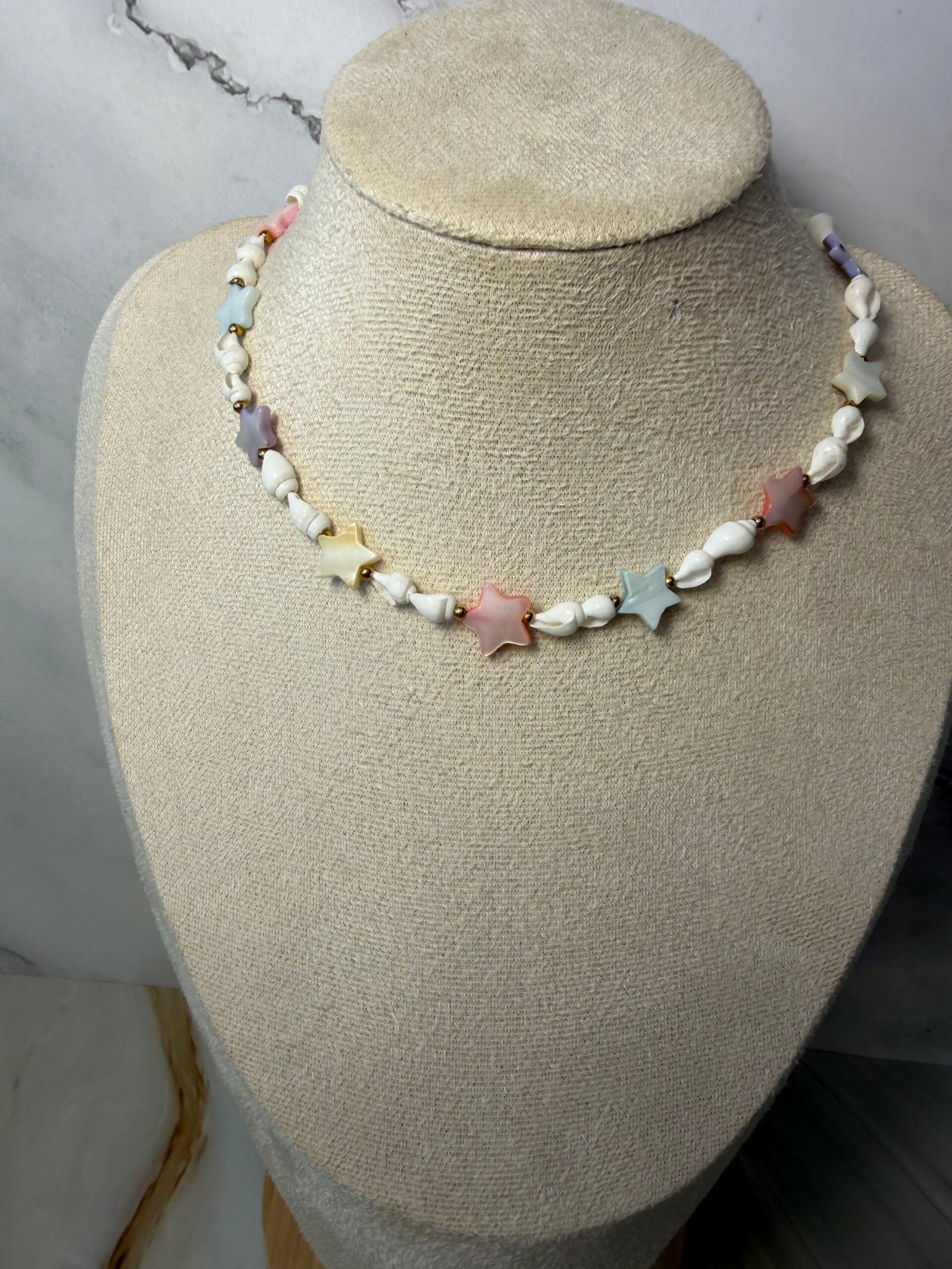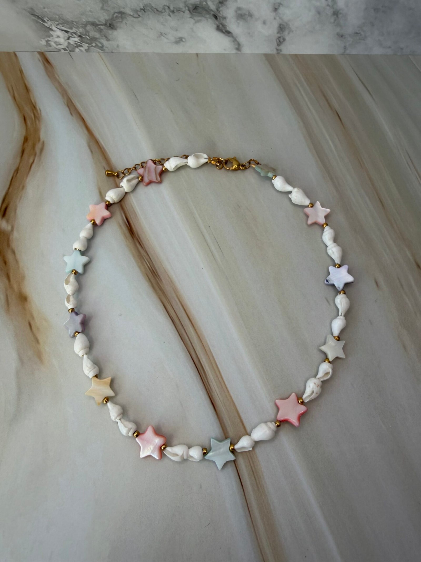 Šis papuošalas sukurtas iš natūralių kriauklių bei spalvotų žvaigždučių formos kriauklių, kurios suteikia žaismingumo ir lengvos vasariškos nuotaikos. Natūralios tekstūros ir spalviniai akcentai harmoningai dera tarpusavyje, kurdami išskirtinį, tačiau lengvai priderinamą dizainą.
