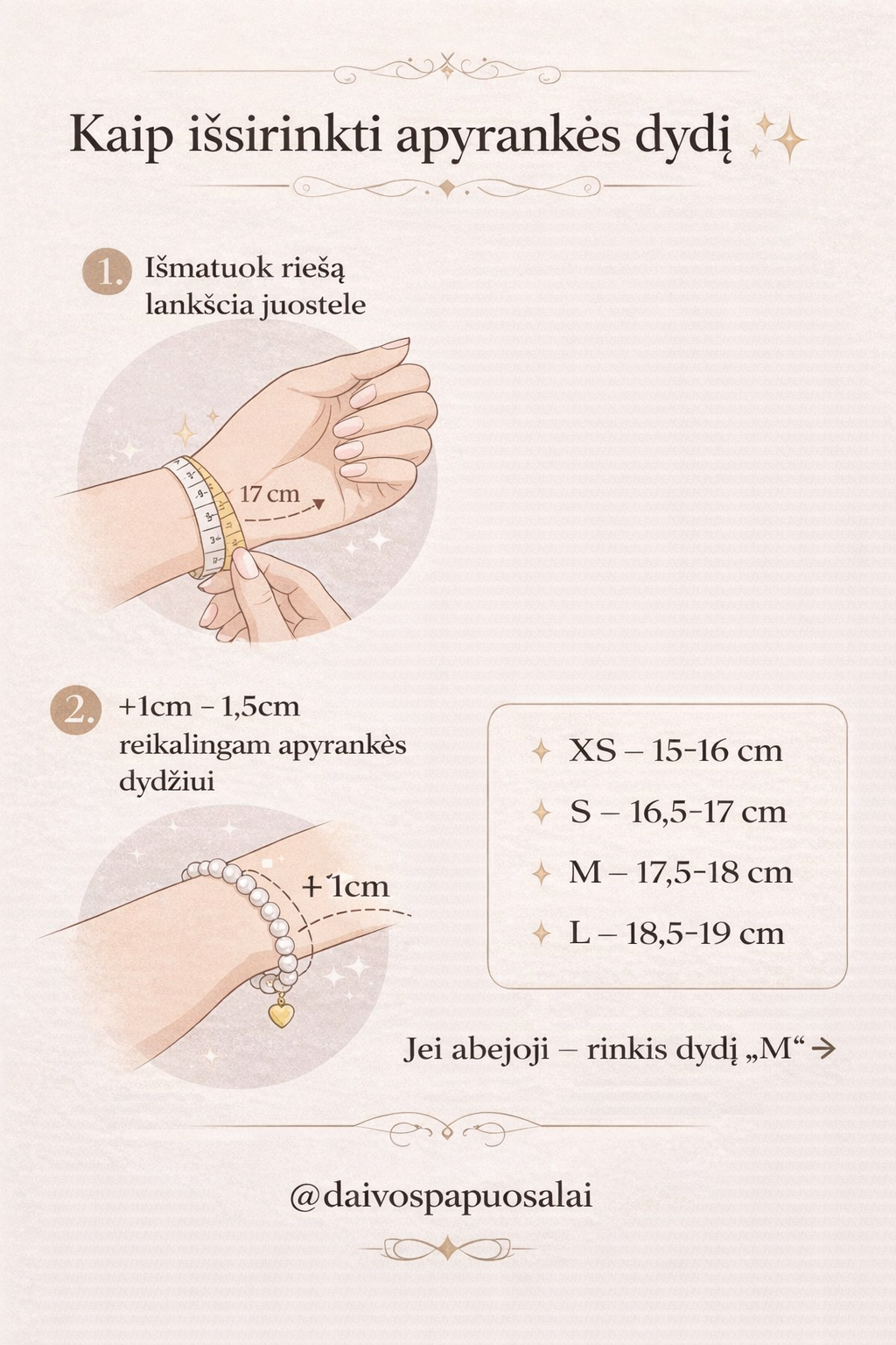 Ši rankų darbo apyrankė pagaminta iš dalmantinio jaspio, matinio onikso, lavos akmens ir briaunuoto agato. Neutrali spalvų paletė lengvai derinama prie kasdienio stiliaus ir kitų aksesuarų. Apyrankę papildo nerūdijančio plieno širdelės elementas, suteikiantis subtilaus išskirtinumo. Tinka dėvėti tiek kasdien, tiek ypatingomis progomis.
