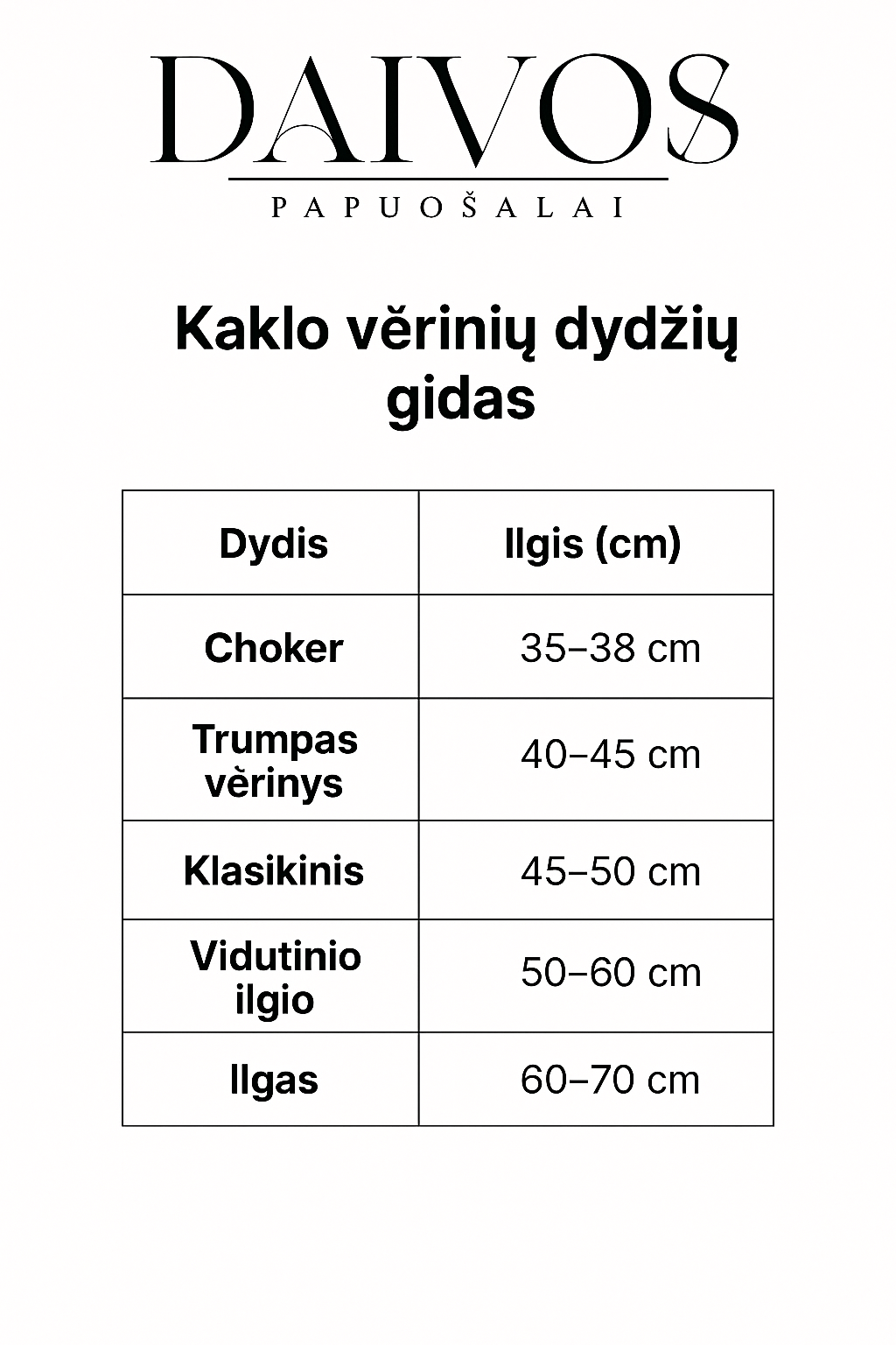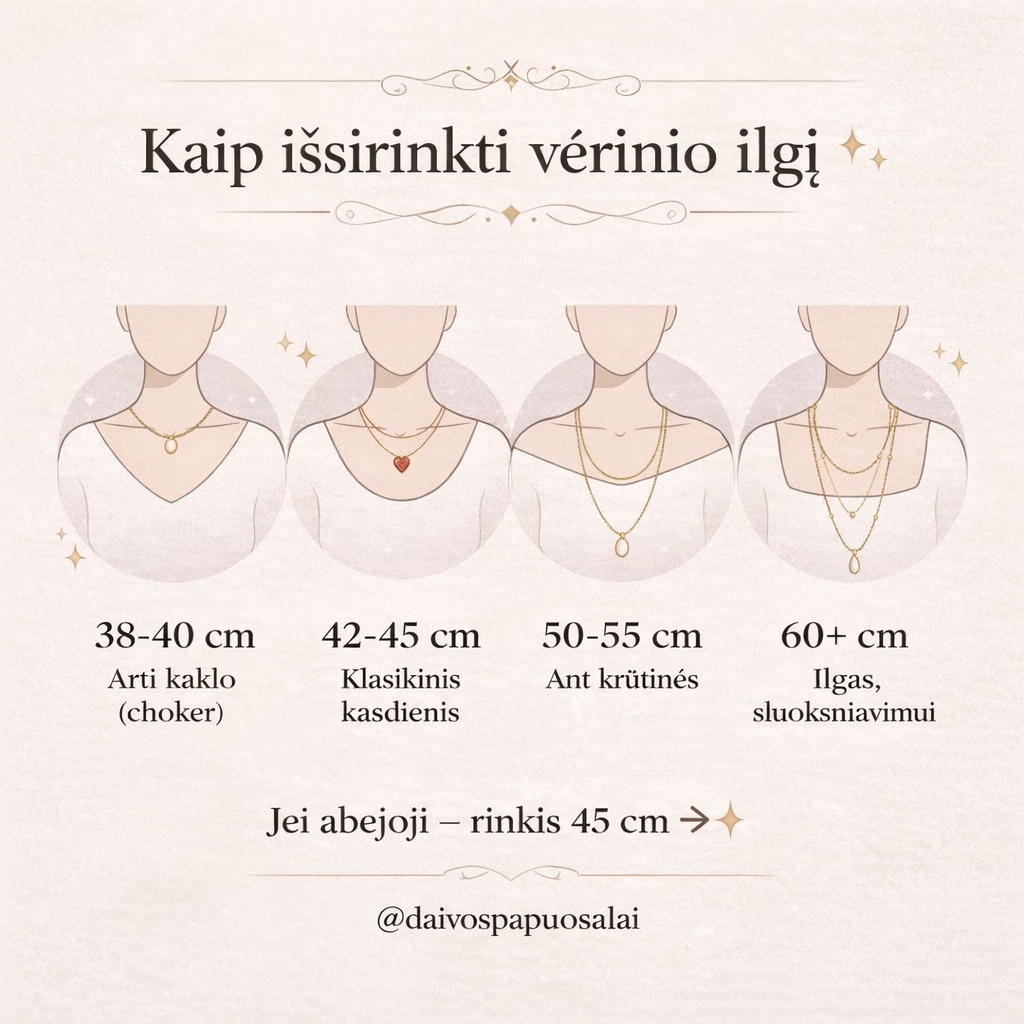 Kiekvienas papuošalas turi savo ilgį – tereikia pasirinkti norimą modelį.