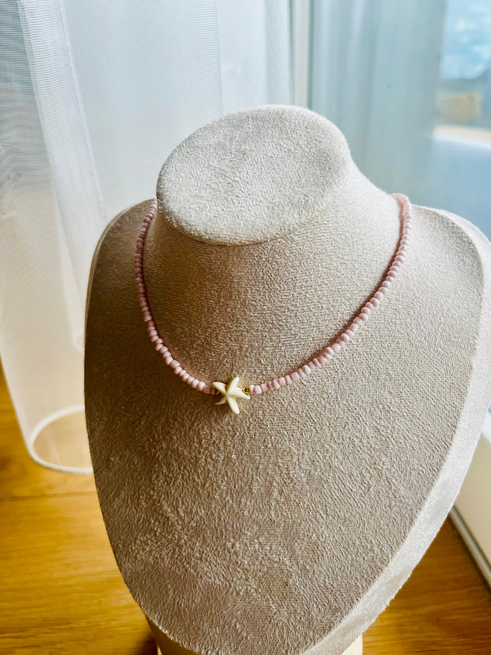 • 1 Nr. – smulkus rožinės spalvos biseris su centre esančia kriauklės formos hematito detale. Minimalistinis, lengvas ir subtilus.
