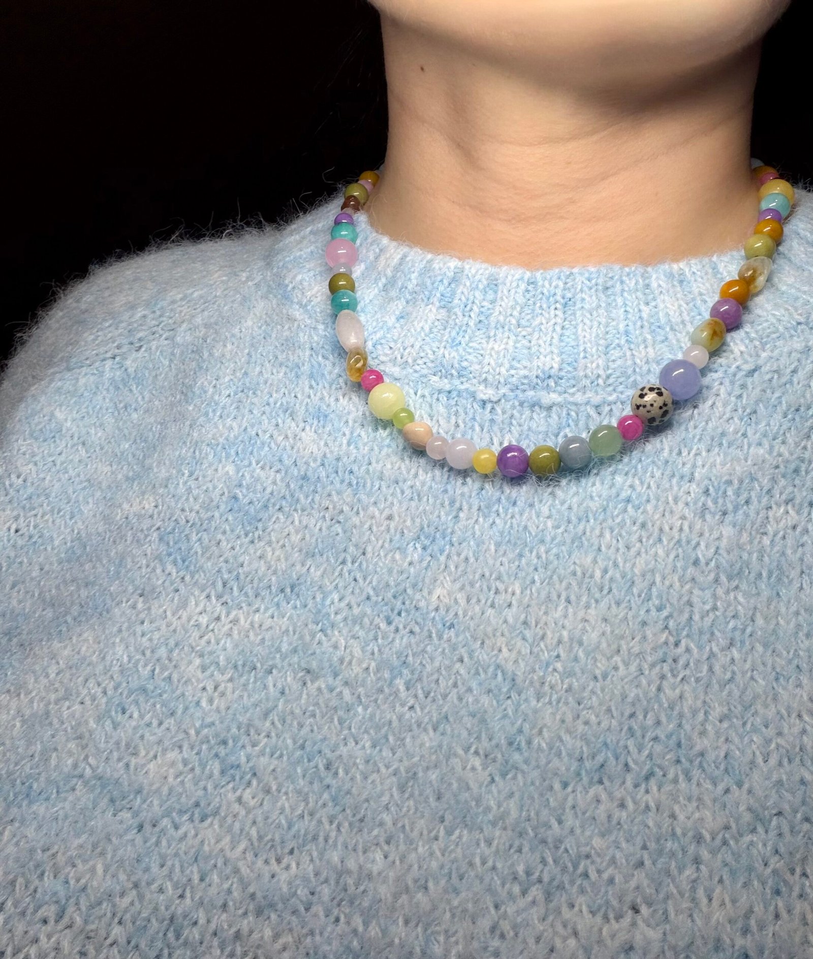 Vėrinys „Vasara“ – spalvingas ir lengvas papuošalas, įkvėptas vasaros nuotaikos. Jis pagamintas iš įvairių natūralių akmenų karoliukų, kurių skirtingos spalvos ir formos susilieja į žaismingą, bet subtilų derinį.